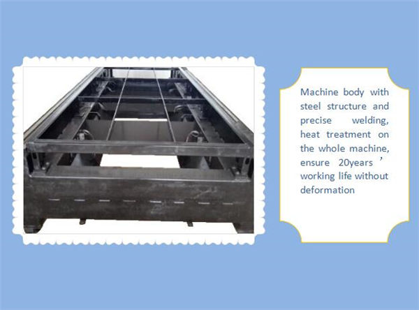 1. Tubuh Mesin kami dengan struktur baja 8mm, perlakuan panas 600 ℃, pengelasan yang tepat, untuk memastikan penggunaan 20 tahun tanpa deformasi.