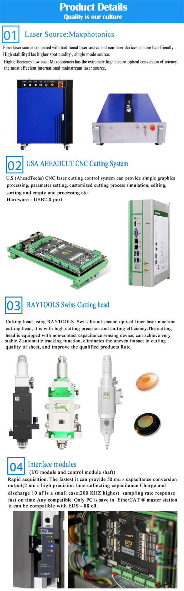 The machine is with imported fiber laser, natural granite base, imported servo motor, high precision cross platform structure.
